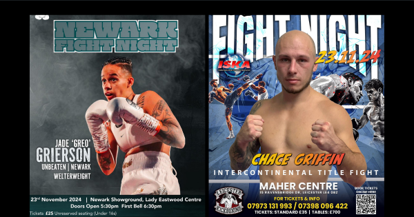 After weighing in on Friday 22 November, Suggy’s Gym’s professional boxer Jade Grierson and professional kickboxer Chace Griffin were both back in action on Saturday 23 November, when Jade was on the card of the Carl Greaves Promotions show at Newark Showground’s Lady Eastwood Centre and Chace was at the Maher Centre in Leicester fighting... Continue Reading →