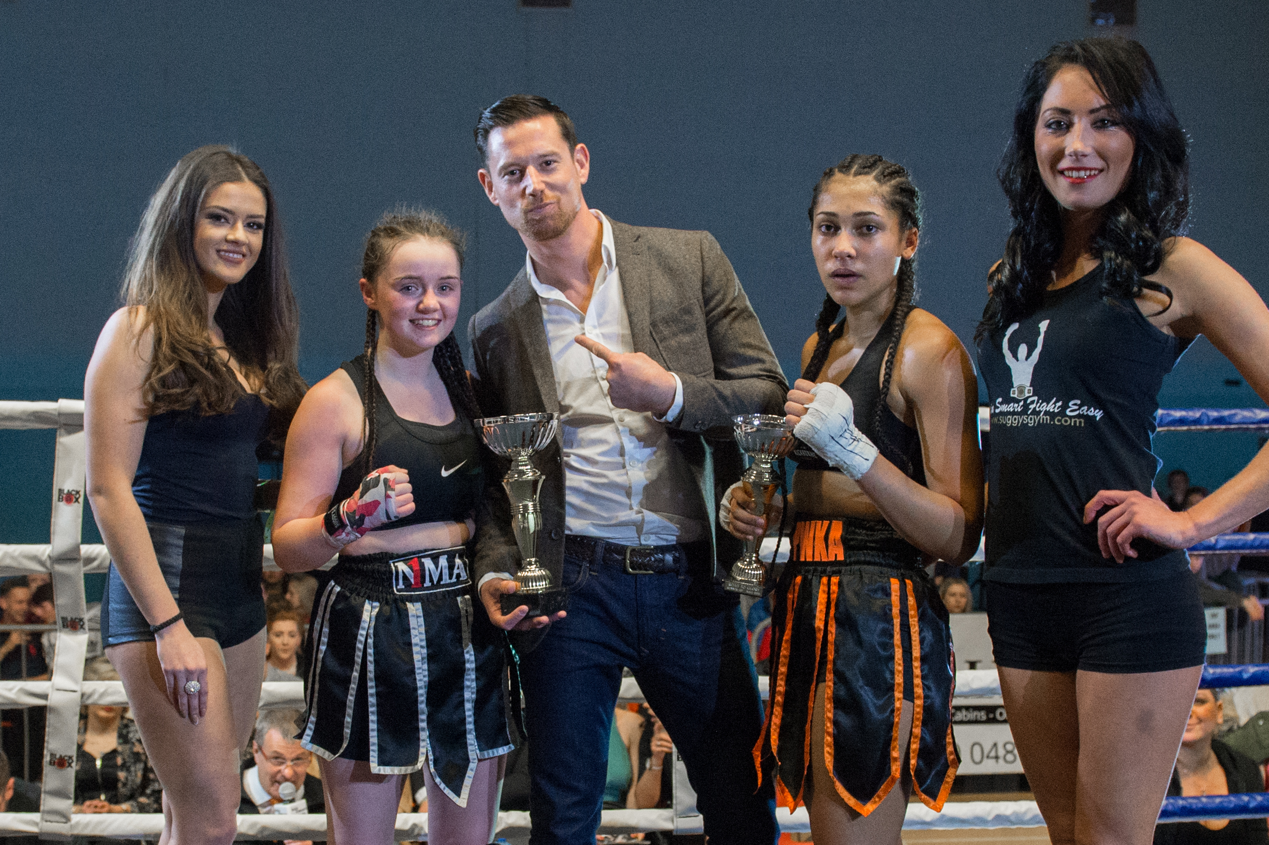 With three fights left on the card, the atmosphere was electric as Bailey ‘BadBoy’ Sugden made his flamboyant entrance. Representing Suggy’s Gym and making the switch from K1 to boxing for the night, the local favourite was fighting at a heavier weight than he is used to but soon showed he was unfazed by the changes.