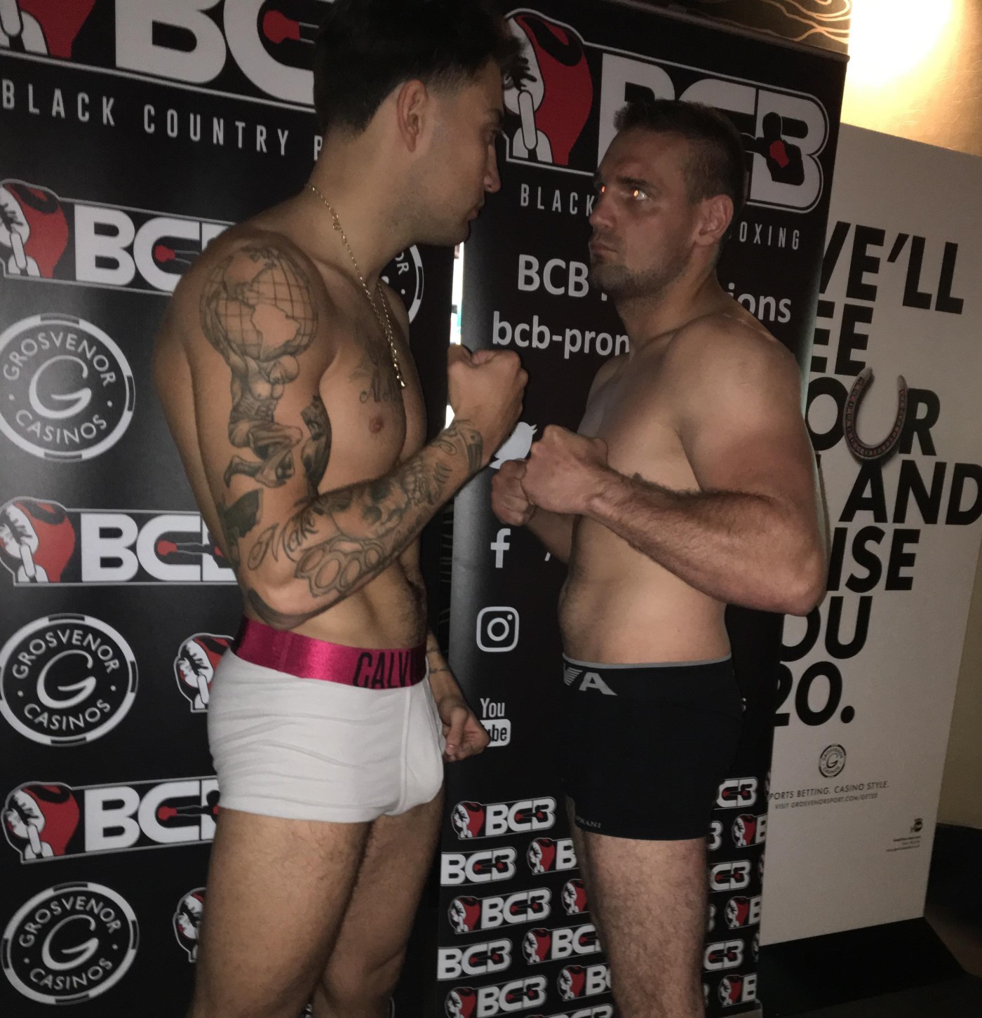 Chad and his opponent Norbert Szekeres weigh in at Walsall’s Grosvenor Casino, ahead of tomorrow’s fight on the card of On The Edge at Walsall Town Football Club.