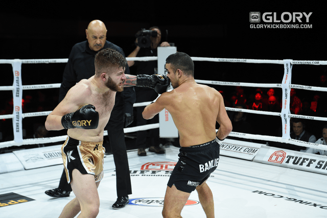After being bundled and pushed to the canvas in the third and final round of his latest outing on the world’s leading kickboxing promotion GLORY, much to the surprise of Bailey ‘BadBoy’ Sugden, the crowd and the commentators a hotly-disputed knock down was called by the referee, even though the Nottinghamshire fighter had immediately jumped back up.