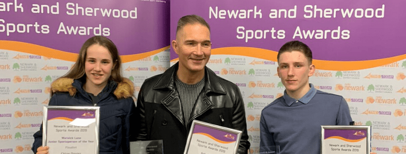 Broadcast live by Radio Newark*, the third and final night celebrating the Active4Today Newark & Sherwood Sports Awards saw both Sam Hardy and Chloe Davies shortlisted in the Warwick Lane Junior Sportsperson of the Year category, with the award presented to 13-year old Sam by Warwick’s father, Richard Lane.