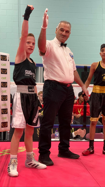 This was the icing on the cake for Sam who, making it look easy at times against a boxer from such an established club with a great record of 13 wins and two losses, was declared the winner and made it three Gold Medals out of three for the team from Suggy’s Gym.