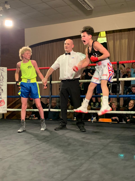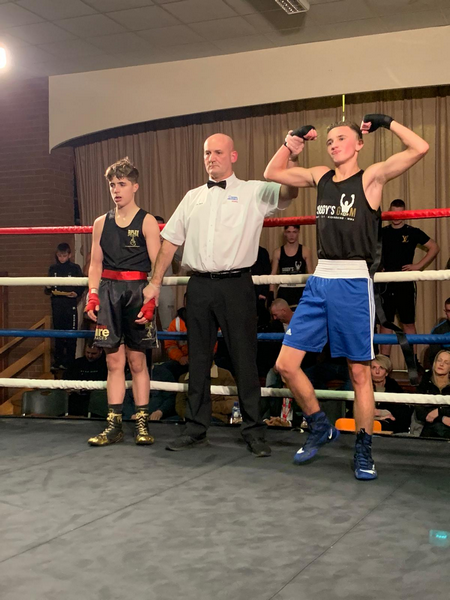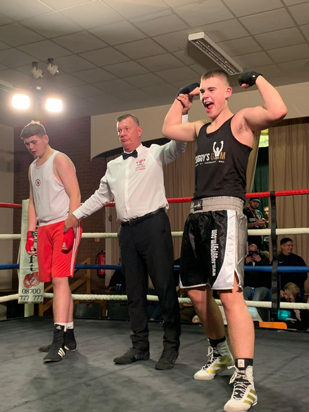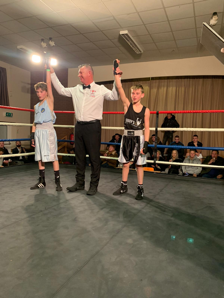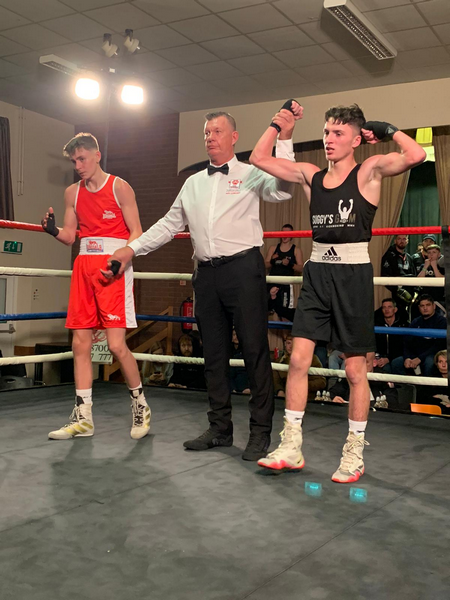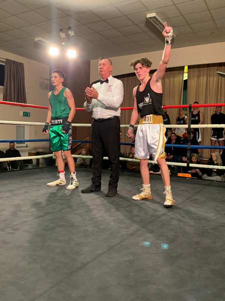 Next up it was the turn of Joel Cook, aged 13 but staying in the Schools category, who was dominant again as he went on to win by split decision against Harrison Skerritt from Braunstone Golden Gloves.