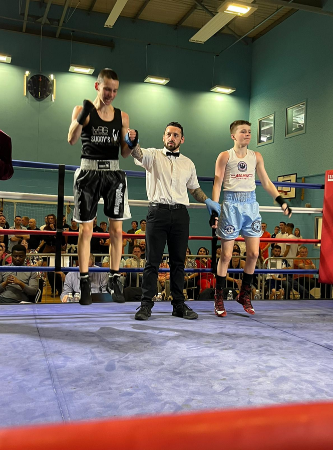 He was followed by Joel Cook, aged 13, whose -38kg match up with Allcomers ABC’s John Browning ended in another win for Newark, this one by a split decision.